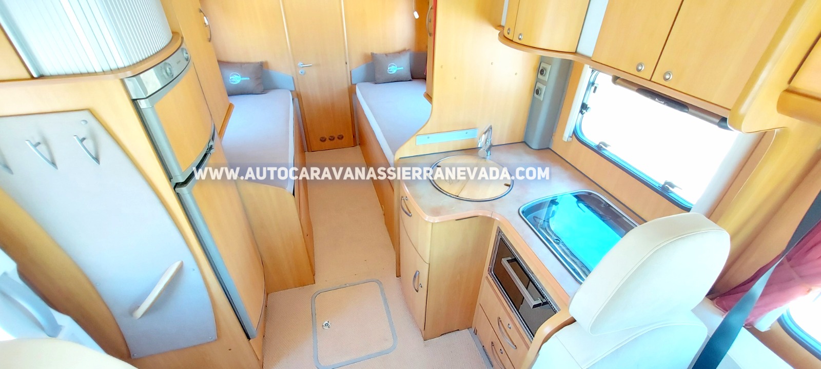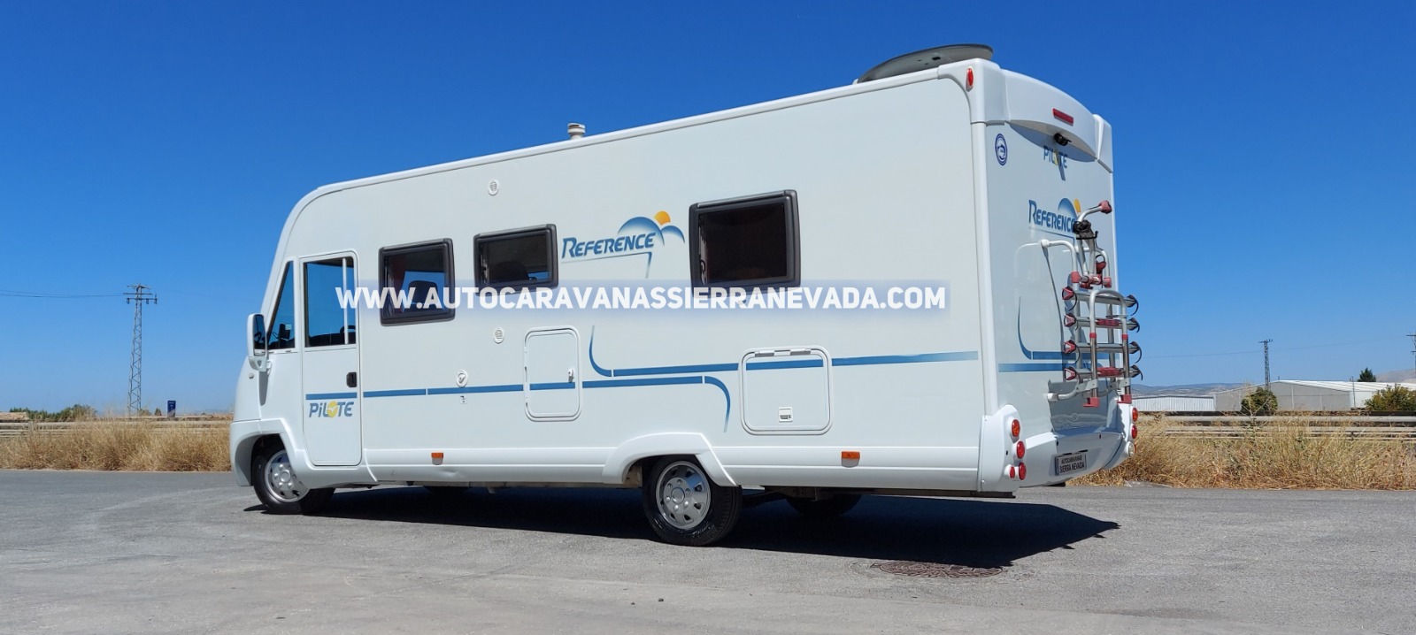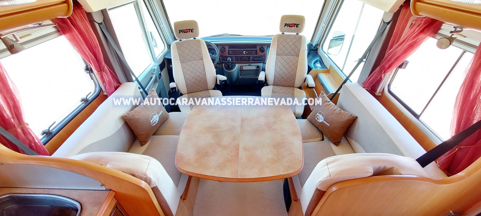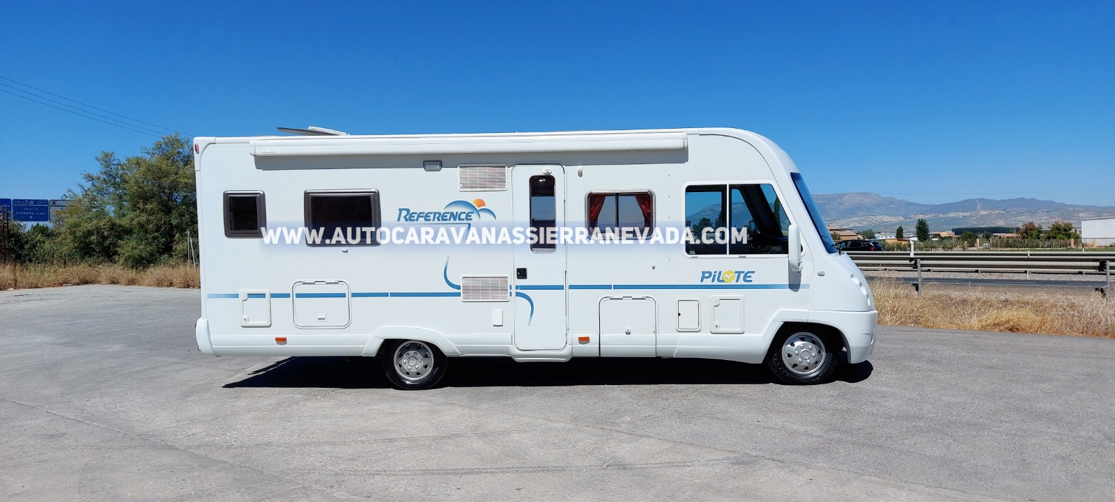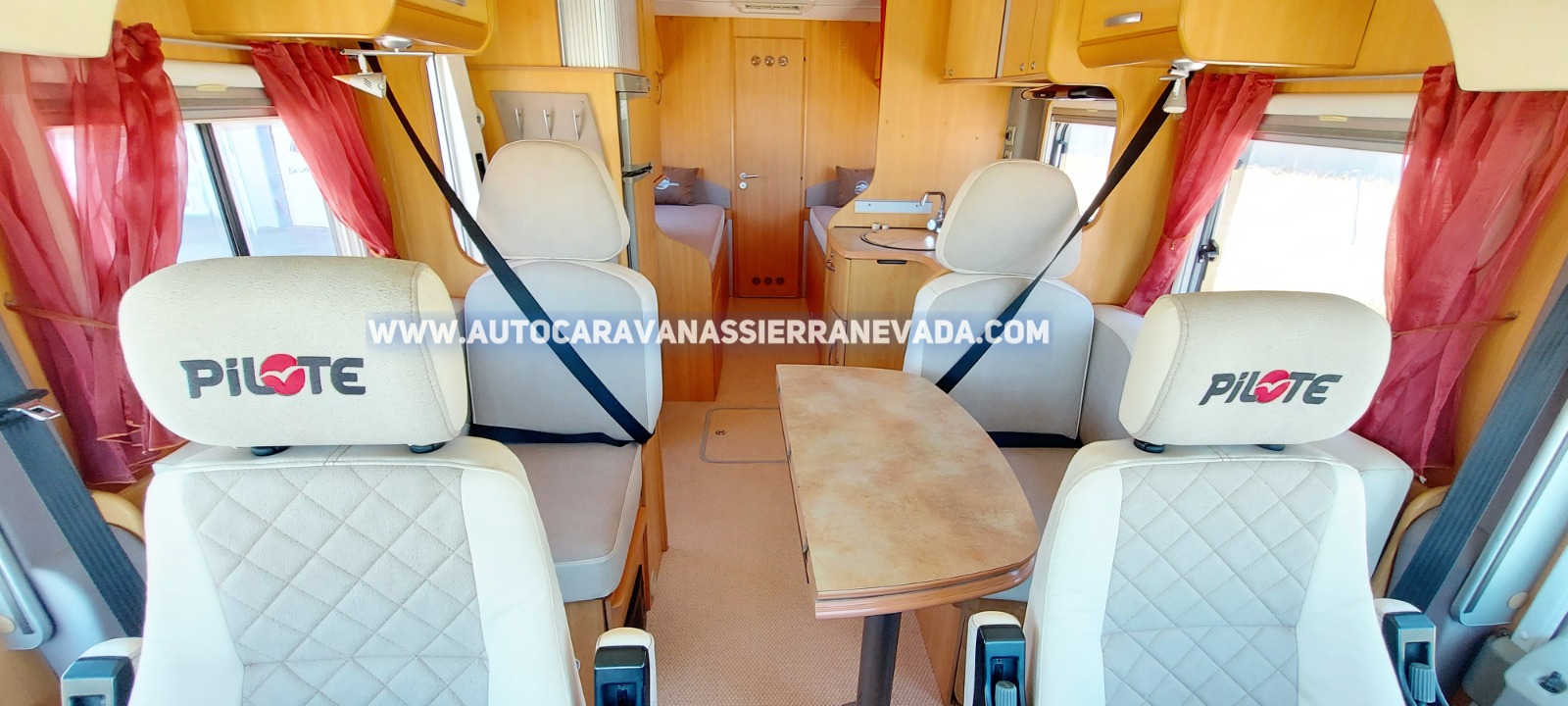 Autocaravana Integral PILOTE, modelo Reference G735, esta marca, está situada en el mercado entre una de las mejores de Europa, similar a Hymer, Burstner o Dethleffs entre otras. Año 2009 con 135.000km. Motor Renault 3.0 dci 140cv y 6 velocidades, un motor muy duro y fácil de mantener con CADENA de distribución. Salón Face To Face. Dispone de 4 plazas homologadas para viajar, con asientos traseros individuales a ambos lados. Contamos con camas dobles: (colgante sobre la cabina y gemelas en la parte trasera, bajo estas se encuentran dos grandes compartimentos para almacenaje, sus medidas son: (1,90m x 0,80m x 0,50m). Cuenta con una distribución muy conseguida y muy amplia gracias a sus medidas: (7,10m x 2,90m).Este vehículo consta de un TurboVent en la zona trasera encima de las camas gemelas, que mantendrá el habitáculo a una temperatura más agradable.