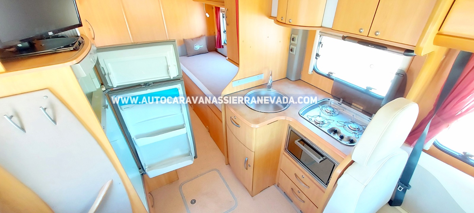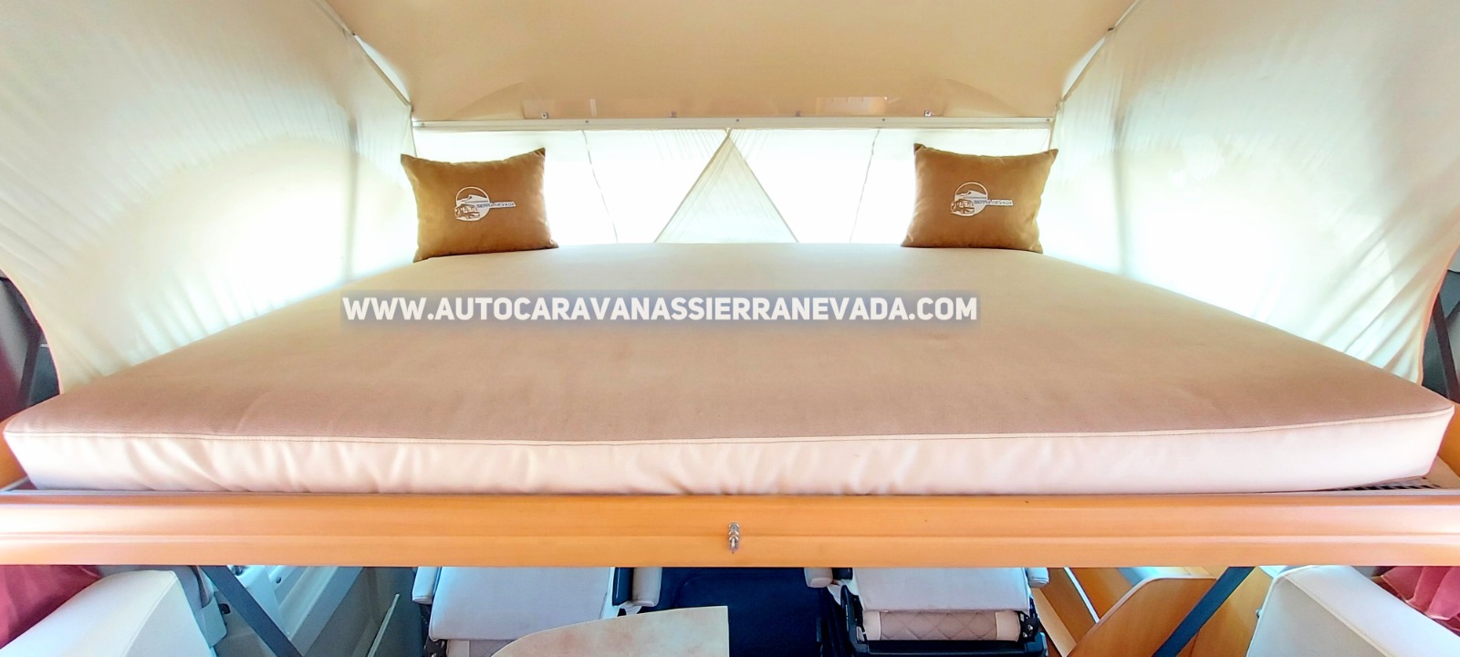 Aire acondicionado(de motor), AirBag (conductor), Velocidad de Crucero, Elevalunas eléctricos (sólo conductor), Radio, Cámara de visión trasera, Asientos giratorios, Oscurecedores REMIS en cabina completa, Mosquiteras en ventanas, claraboyas, Claraboya XXL en salón, Ventana PRACTICABLE con mosquitera en puerta principal, TurboVent, Frigo DOMETIC (220v, Gas, 12v, Auto) 150L capacidad, Horno, Extractor de humos, Ducha con mampara dentro de aseo, Batería de 100ah., Placa solar de 100w., Calefacción TRUMATIC C, Herramientas y Rueda de repuesto, Tv 12v. (TDT-HDMI-USB), Escalón de doble peldaño integrado, Toldo OMNISTOR de 4m., Grandes huecos de almacenaje bajo camas gemelas, Neumático reforzados marca MICHELIN especial camper