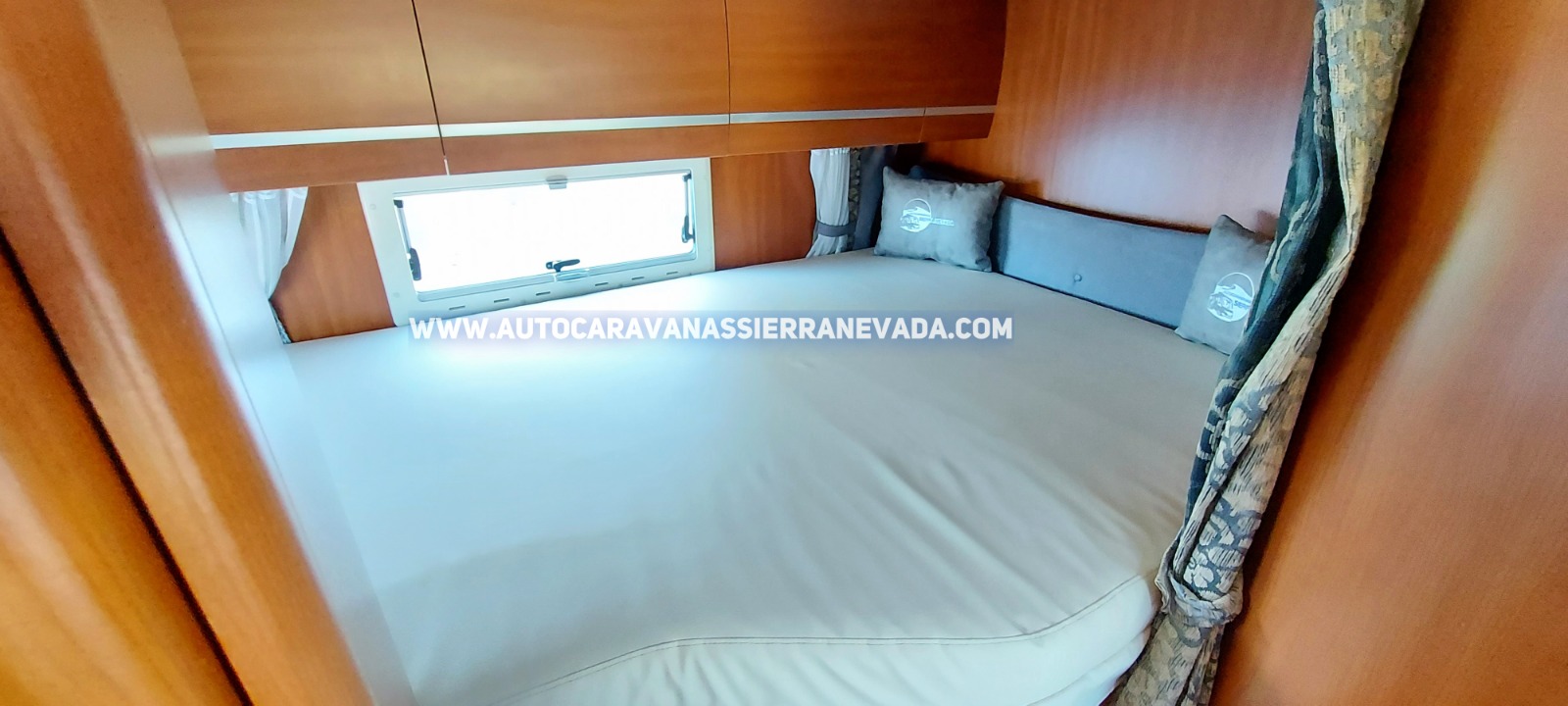 Autocaravana Perfilada CHAUSSON Welcome WS es el modelo de alta gama de esta marca, la característica que destaca es su grosor en el techo y paredes, siendo más grueso de lo normal, protegiendo el interior de temperaturas extremas. Dispone de una claraboya panorámica muy amplia en cabina por donde le entra mucha claridad dándole una sensación de amplitud y mucha ventilación .Consta de un TurboVent en dormitorio, y Boiler Truma para agua caliente y calefacción WEBASTO por gasoil. Del año 2009 y con 78.000km. Un motor Fiat Ducato 2.3 MultiJet y 130cv motor muy duro y de fácil mantenimiento. Este vehículo tiene una medida ideal para alguien que va a iniciarse y/o quiere circular por sitios con limitación de espacio, sus medidas (6,00m x 2,70m). Homologada para viajar 4 personas. Con 2 camas: (Salón convertible para 2 personas y cama Transversal elevable en la parte trasera, gracias a este tipo de cama dispone de una gran garaje con doble portón xxl, sus medidas: (2,15m x 1,20m x 1,20m), donde podrá llevar muy cómodamente varias bicicletas.